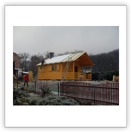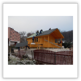 Na Walnym Zebraniu w 2013 roku podjęliśmy uchwałę o budowie domku, który miałby pełnić rolę świetlicy. Oprócz tego, zarządom przybywa coraz to więcej dokumentacji, więc decyzja o budowie była jak najbardziej zasadna. Po przeprowadzeniu niezbędnych czynności związanych z przygotowaniem terenu oraz dokumentacji w przeprowadzonym przetargu wyłoniona została firma „WYROBY Z DREWNA” z Ujsoł. Ze względu na sprzyjające warunki atmosferyczne, prace zostały wykonane na przełomie 2013 i 2014 roku.